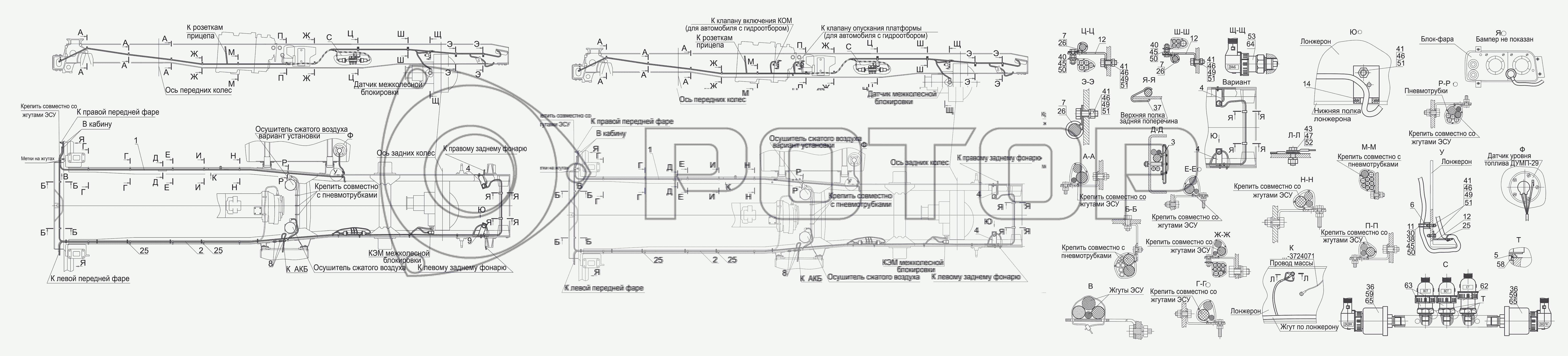 Каталог запасных частей к технике: МАЗ-5440B9, 6430B9. Установка электрооборудования на шасси 5440В9-3700010-001, 5440В9-3700010-052