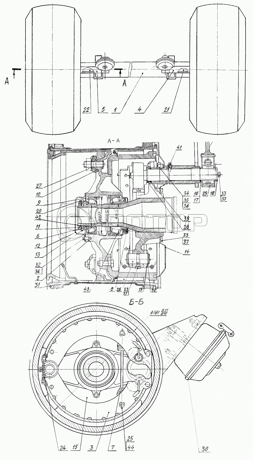 Каталог запасных частей к технике: Бобруйскагромаш ПСТ-9. Ось с колесами (ПСТ-9.12.13.080)