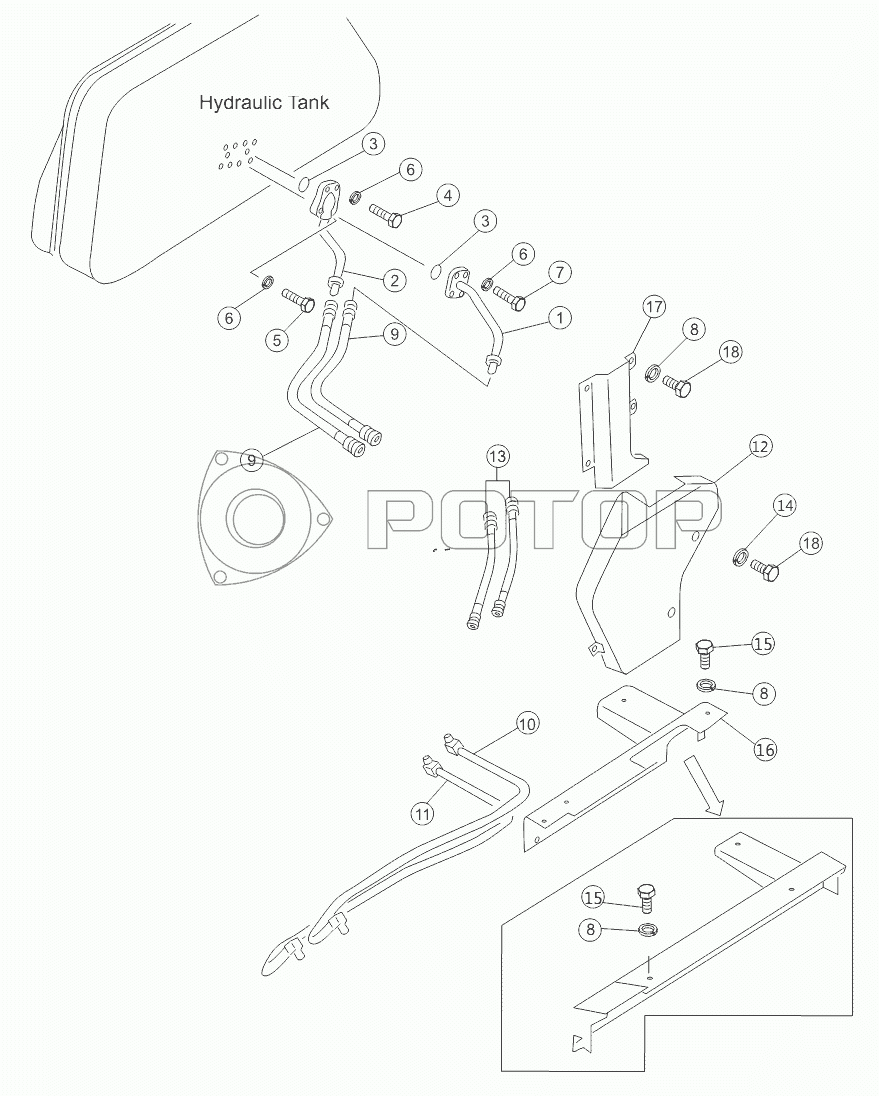 Каталог запасных частей к технике: Shantui SD16 (вариант). TILT PIPING ASSY INSIDE 16L-63-001 V1.0